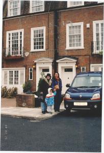Eu com Maria Luiza e Éttore em frente à casa deles em Swiss Cot