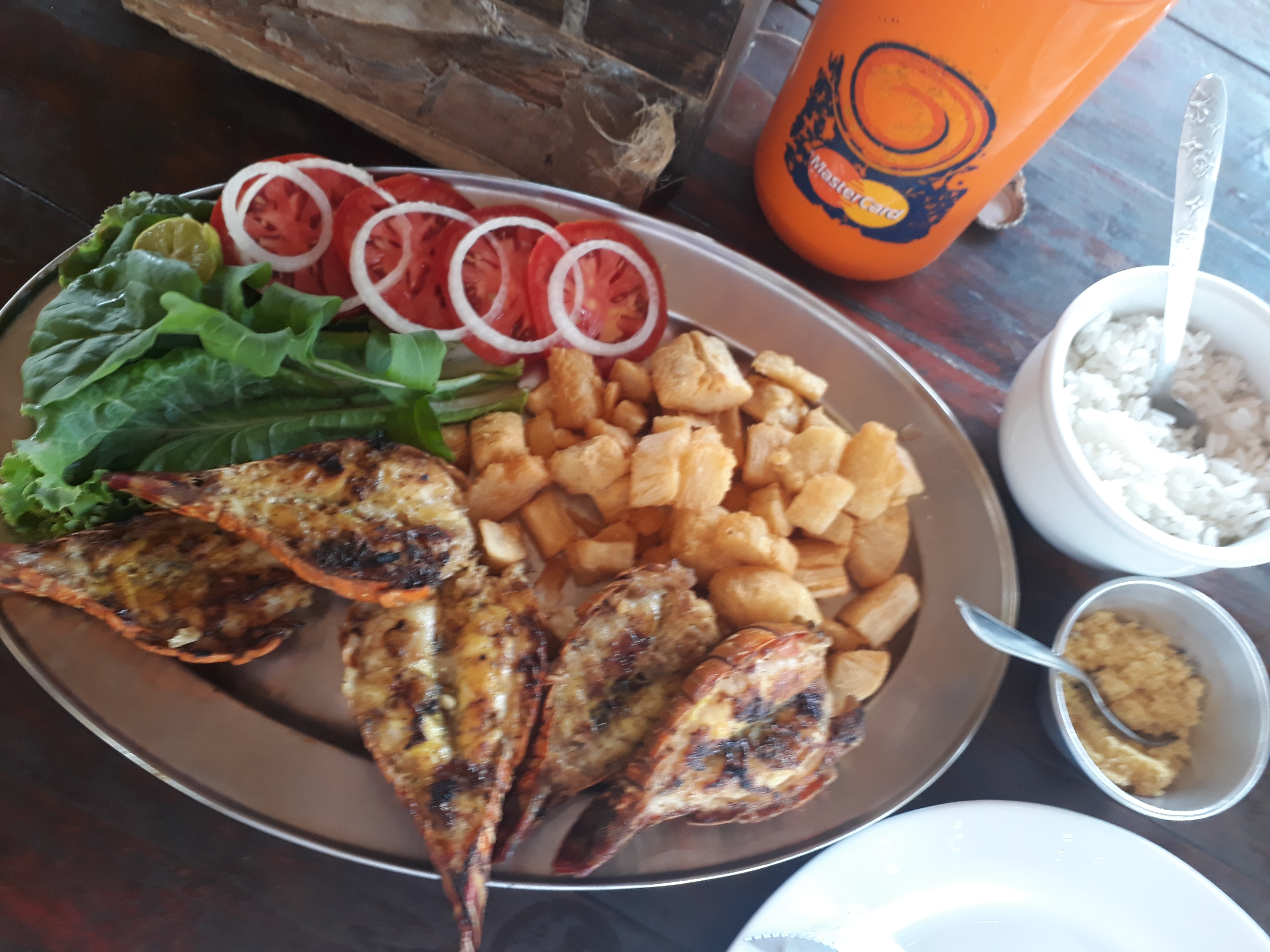 Para o almoço, rumamos a São Miguel do Gostoso. Na praia do Cardeiro, na região central, há dois cantinhos famosos: o Sheik´s e o Bar do Tico (o dono Dedé). O mar é bem afastado. A garçonete Nininha do Bar do Tico nos atendeu e pedimos lagosta grelhada, macaxeira frita, salada, arroz e farofa. Fazia tempo que não apreciávamos uma lagosta, tudo delicioso regado a uma cervejinha para espantar o calor. Os dois restaurantes são uma espécie de oásis na praia. O calor é imenso.
