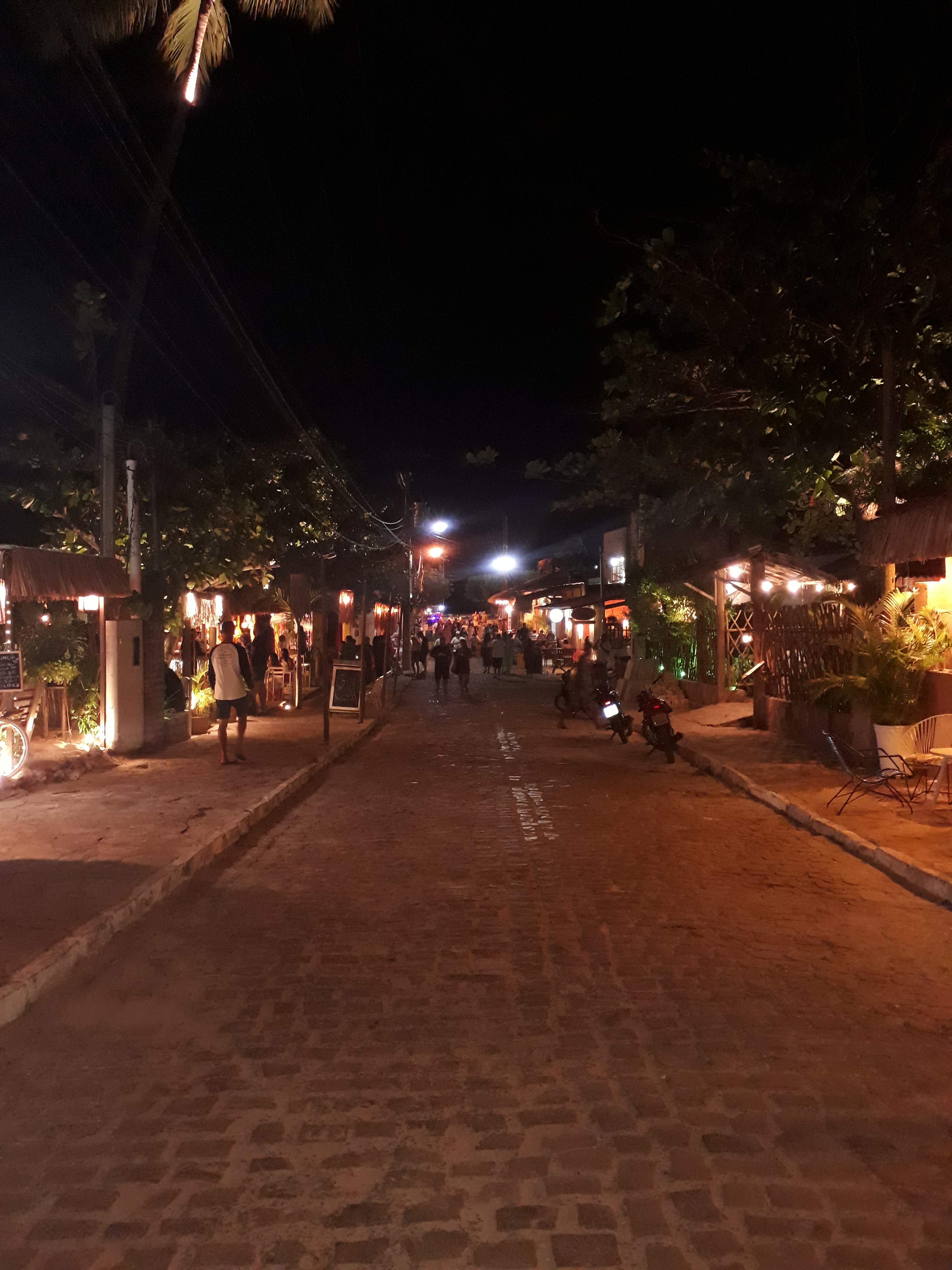 À noite, em São Miguel do Gostoso novamente. Descemos no centro em frente ao Mango´s (creperia e sanduicheria). Pedimos De los Roques (crepe estilo Marguerita) com suco de maracujá e abacaxi com hortelã. Na avenida principal “dos Arrecifes”, o burburinho é grande. Os restaurantes, cafés, creperias são estilosos, com luzes, cores, bem decorados. O ritmo da cidade é interiorano, ou seja, mais lento. Ninguém tem pressa. Para finalizar o dia, paramos no Bodega Café e lá veio mais um salgado e uma torta de limão caseira. A proprietária Virna é instrutora de windsurfe, veio de Santa Catarina e é um bom papo.