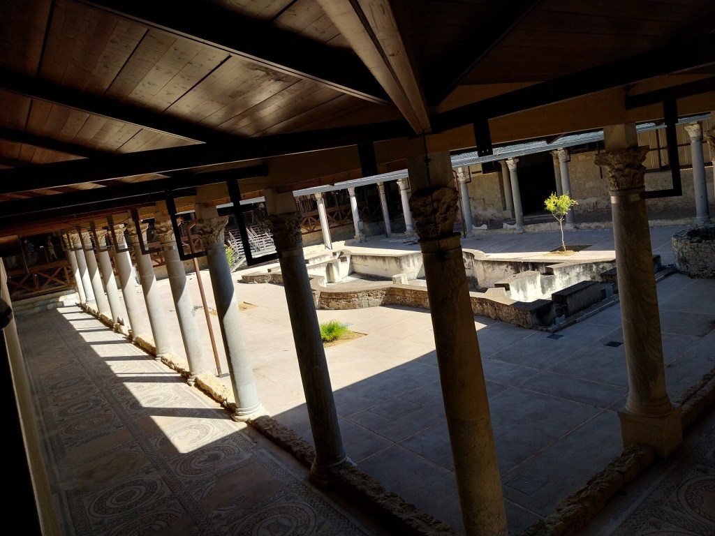 Hoje é dia 9 de outubro de 2025. São 14h30 e estamos para entrar na Vila Romana de Casale. Dia longo, com muito movimento. Segundo o informativo da excursão da Europamundo, visita para conhecer esta aldeia Patrimônio da Humanidade. As vilas no Império Romano eram o símbolo da exploração agrícola. Em Casale, não só foi preservada a configuração arquitetônica do séc. IV, mas devido à sua abundância e qualidade, os mosaicos que adornam quase todos os quartos são os mais bonitos do mundo romano.