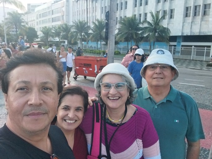 Nós com o Renato e Simone no calçadão do Arpoador-Rio de Janeiro-foto selfie tirada por Carlos Renato Machado
