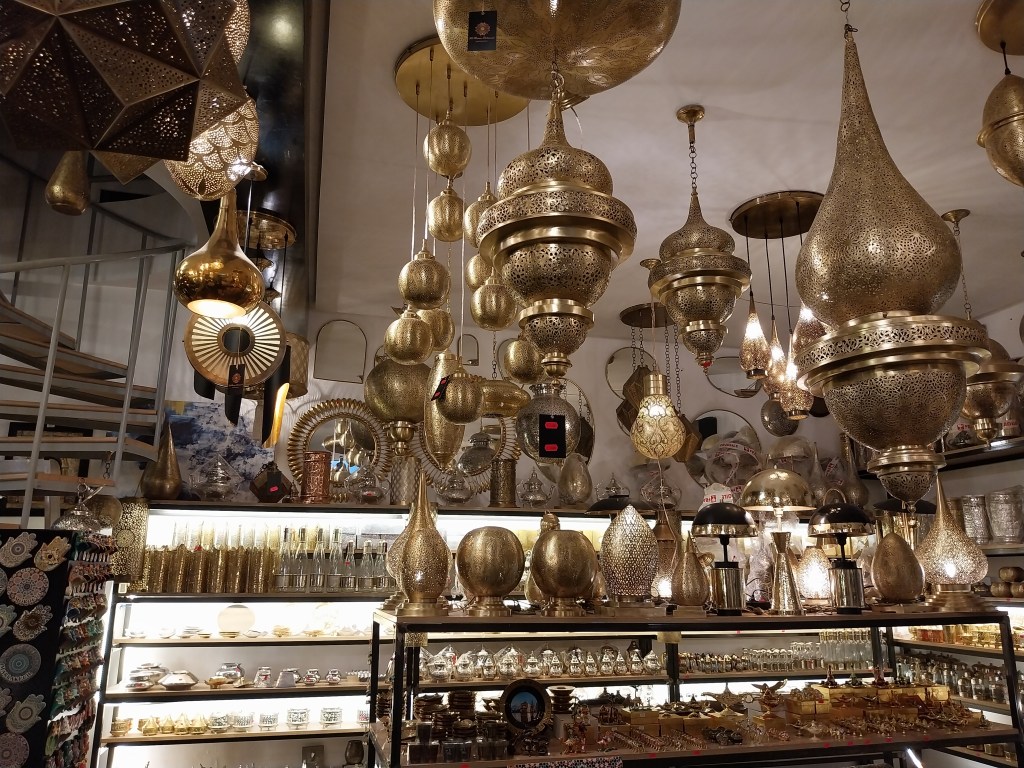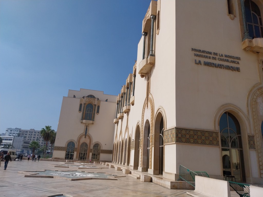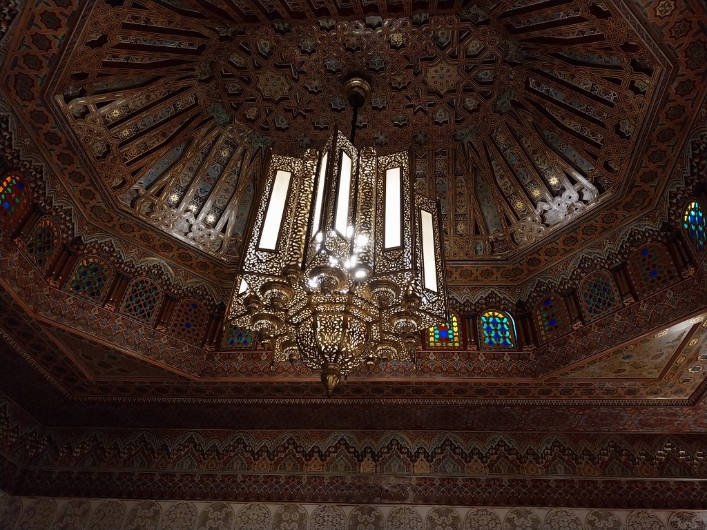 O salão marroquino com sofás e de mármore italiano com acesso privado era o da favorita. O guia nos conta muito sobre a cultura à época. Na religião se aceita o divórcio se o casamento não estiver bom. No Marrocos não se usa burca, não é obrigada a se cobrir toda. Nos jardins de inverno do palácio, havia espaço para as quatro esposas/mulheres em um pátio grande passearem e tomarem vitamina D sem cruzarem uma com a outra. Hoje são usados para eventos culturais, musicais e de casamentos. Os guias falam de forma aberta sobre assuntos matrimoniais.