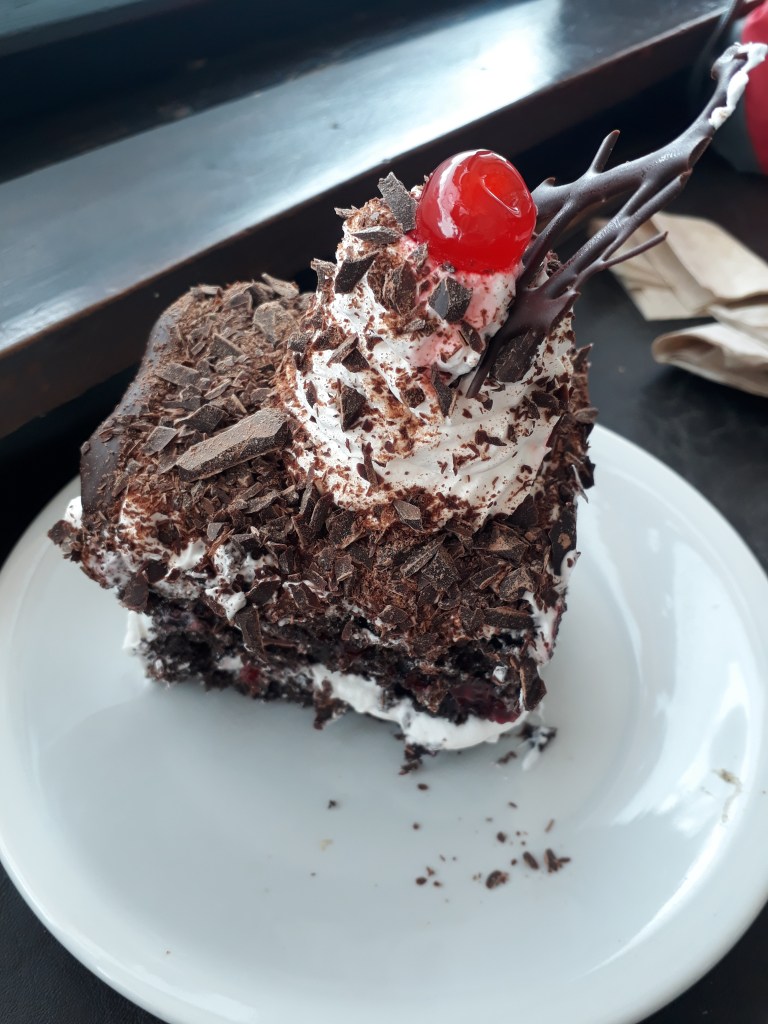 No café da manhã, não vi tapioca, mas havia batata-doce, banana da terra, bolos diversos, pães, frutas, muito bom. Lotado de gente.