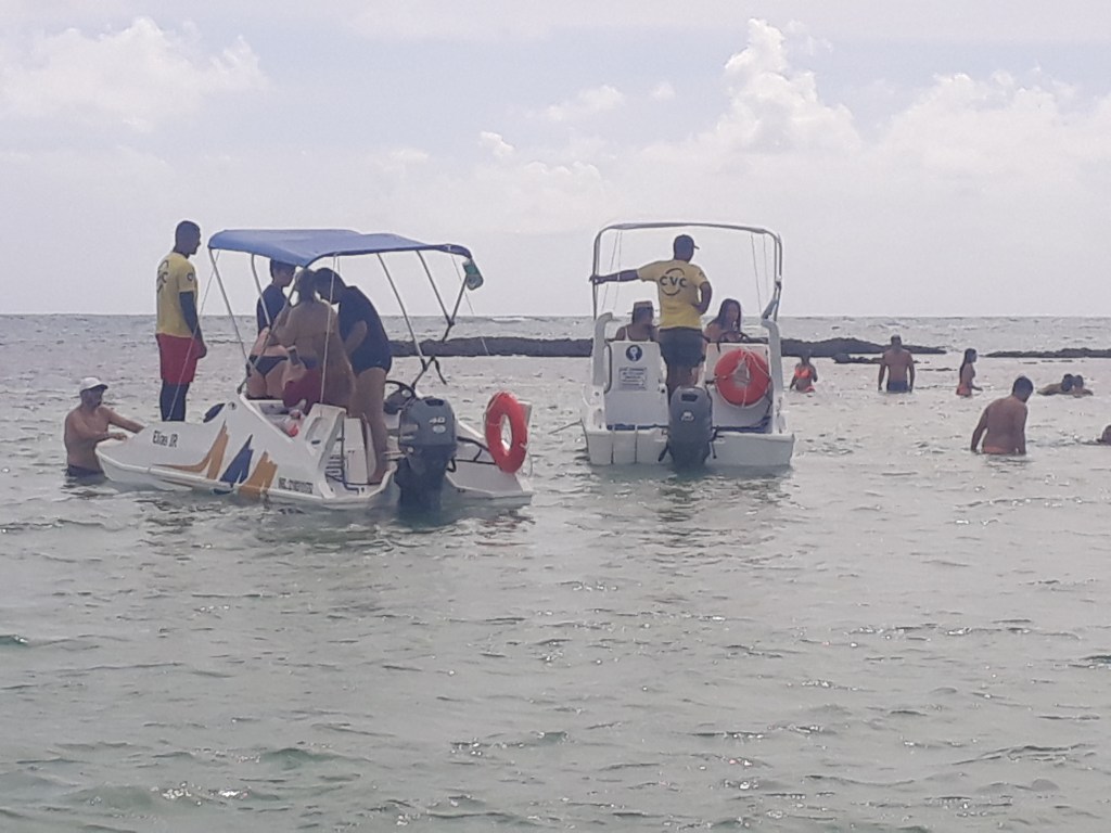Gunga é bem mais em conta do que Maragogi, os preços são mais razoáveis. Na praia, o barulho é ensurdecedor: tem gente andando na praia com aparelho de som, as lanchas dos banana boats disputando quem escuta música mais alta, e achei interessante ver no mar um rapaz com um aparelho coletando lixo usando protetor de ouvido. Mil pontos para ele. Ele nos disse que a cacofonia de sons é diária. Uma pena, o lugar só não é paradisíaco por causa da barulheira. Aí entramos no ônibus cansados e como dizer aos turistas não escutar áudios das suas mensagens alto no ônibus? Socorro! Em quesito de educação, estamos mal. Para mim, o mar é sagrado, aprecio mesmo é o som das ondas. E respeito o direito ao silêncio do outro.